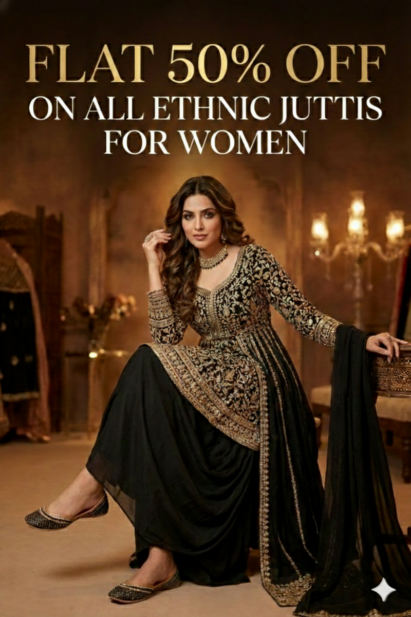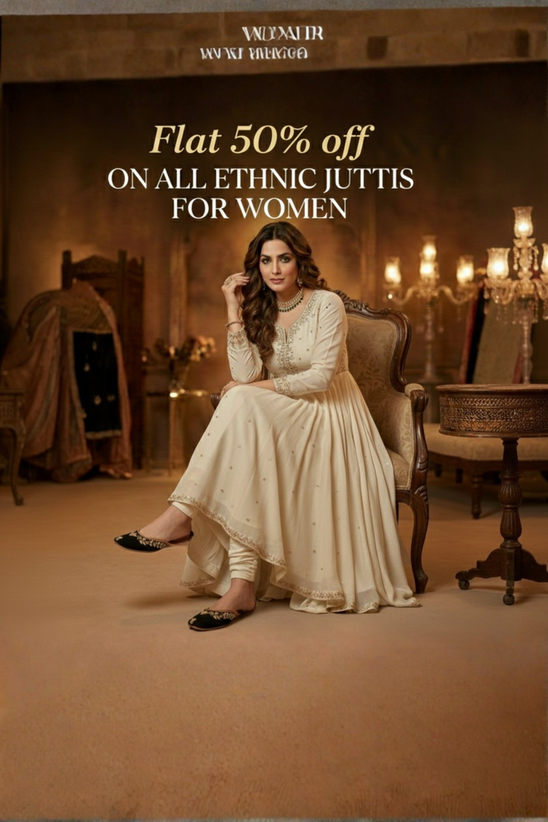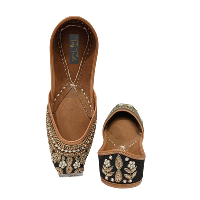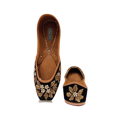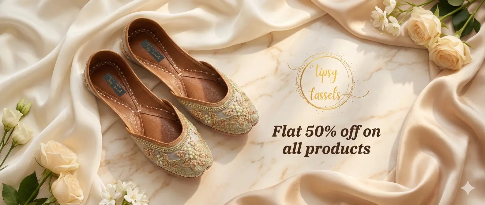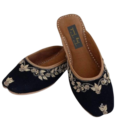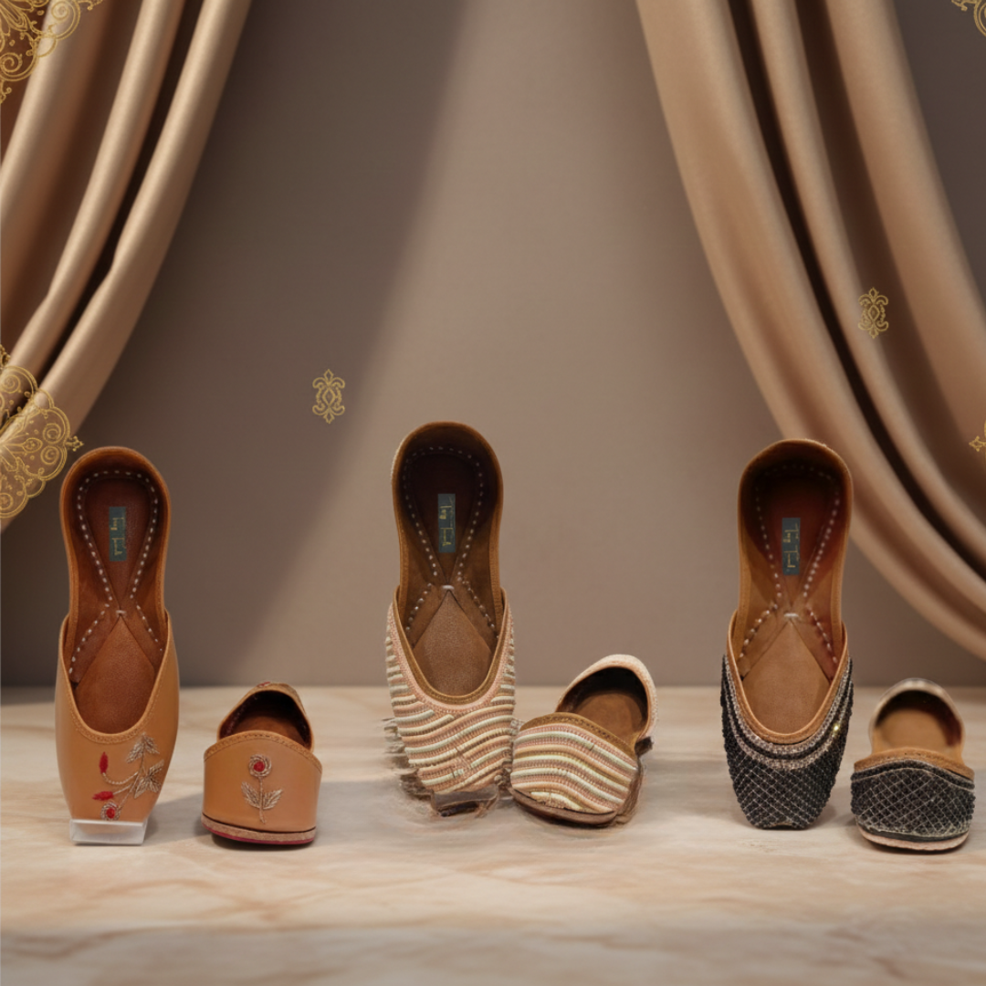 Intricately handcrafted juttis designed with traditional embroidery and modern comfort — perfect for weddings, festivities, and refined everyday wear.